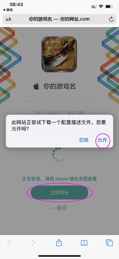 点击立即信任,在信任的提示中,选择“允许”,如图: